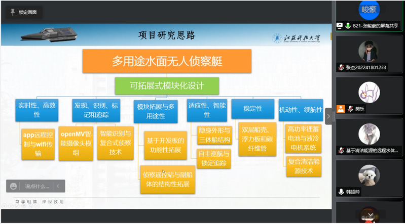船海学院2021年本创项目“多用途水面无人侦察艇”的PPT内容展示
