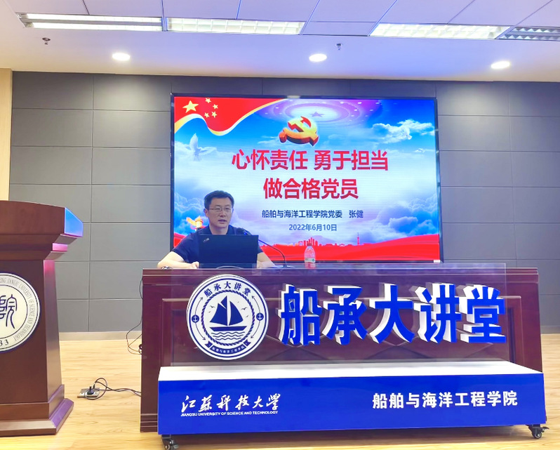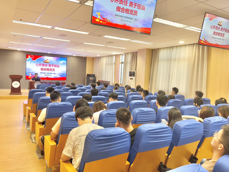 毕业生党员在离校前接受一次严格的党性教育是加强大学生党员教育的重要环节。为进一步落实党员教育、管理和服务长效机制,落实立德树人根本任务,6月10日,船海学院在“船承大讲堂”开展毕业生党员党性教育。党委书记张健讲主题党课,激励全体毕业生党员坚定信念、胸怀祖国,以良好的精神风貌踏入新的征程,以实际行动和优异成绩为党旗增辉。学院毕业生党员、预备党员参加党课培训。