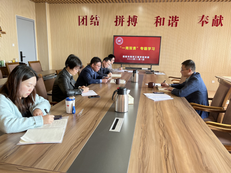 11月7日,船海学院党委开展“一岗双责”专题学习,学院党委委员、纪检委员、副院长徐刚领学,学习活动由学院党委书记、院长张健主持,全体领导班子成员参加学习。
