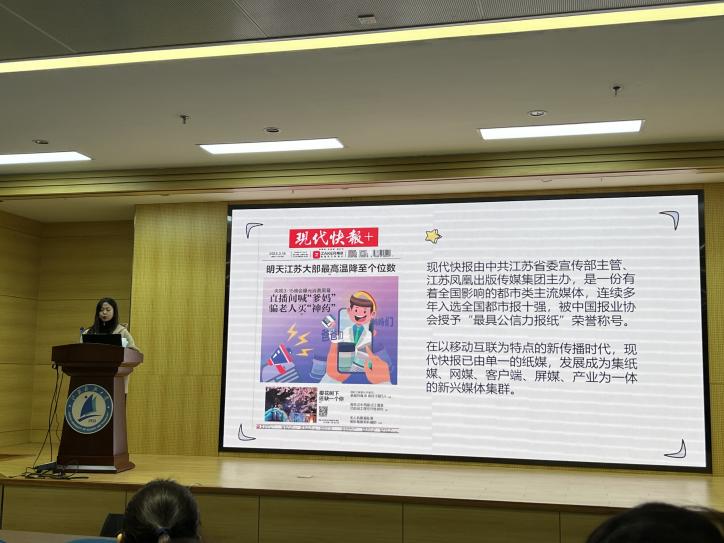 曹德伟记者首先从“江科大开始潜水课,网友们都羡慕坏了”和江科大学生陈青秀的故事在现代快报的报导情况和新闻的发现过程,切入今天的新闻稿写作培训。曹记者强调事实的重要性是新闻的生命力,强调了校园是新闻的富矿,发现优质新闻应当多听,多想,多看,多问,多查询。以自身的采访实例向我们展示了采访的五个“W”要素,要找好采访对象,做好采访准备,把握采访节奏,善于倾听采访对象,做好采访笔记。同时曹记者向同学们介绍了新闻稿写作技巧,要做好材料分析,打好草稿并尽快动稿,并且举例了两篇校园文章进行点评,指出了同学们在写作过程中容易犯错误的地方,让同学们认识不足,改进方法。