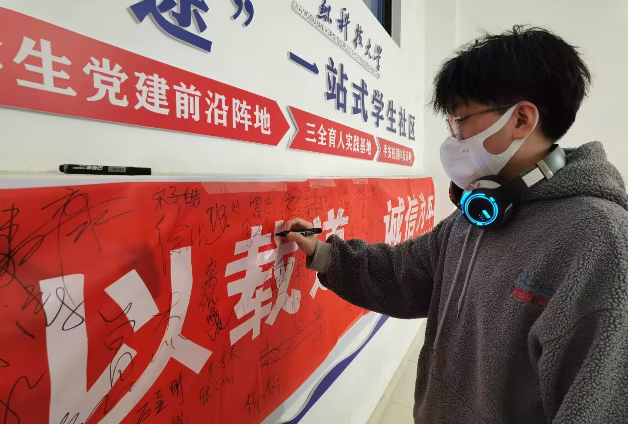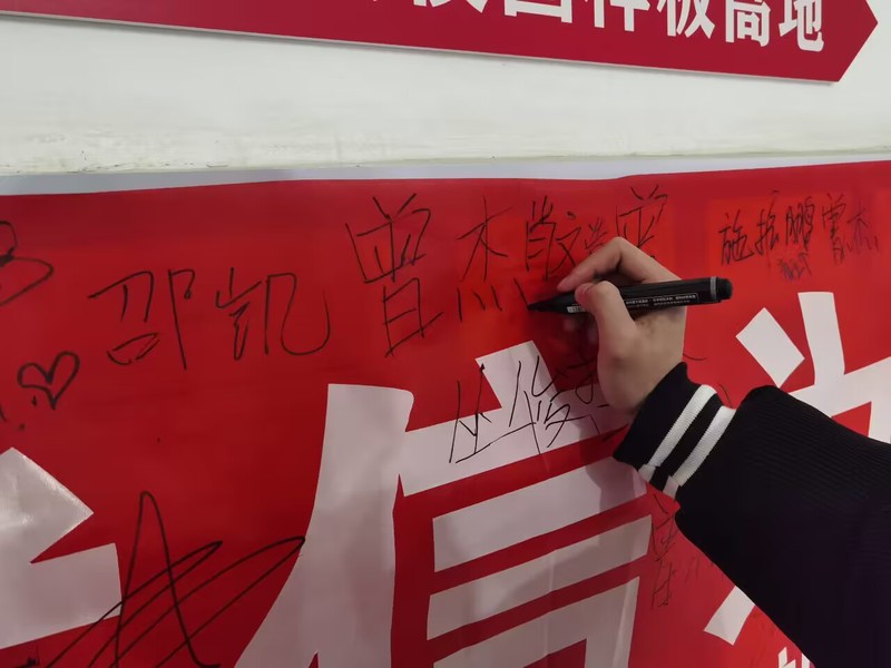 此次活动吸引了许多同学积极签名参与,同学们郑重地在诚信横幅上签上自己名字,表明自己履行承诺的决心,留下诚信应考的庄重承诺,同时表示将坚守文明考风、良好学风、文明校风,自觉抵制考试作弊行为,做一名文明诚信的学生。