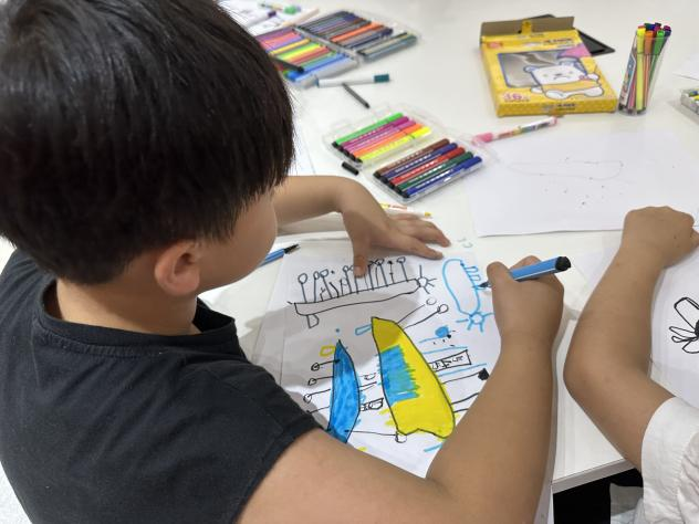动手实践过程中,实践团成员带领小朋友们一同绘制梦想中的船舶简画,摇身变为小小造船师;一起手拼广州号驱逐舰,感受军舰的宏伟雄姿;一起制作电动小船,在水池中扬帆起航,感受逐梦海洋的壮阔。实践课程培养了孩子们的动手能力,激发了孩子们对船舶设计与建造的兴趣,增长了他们的见识。