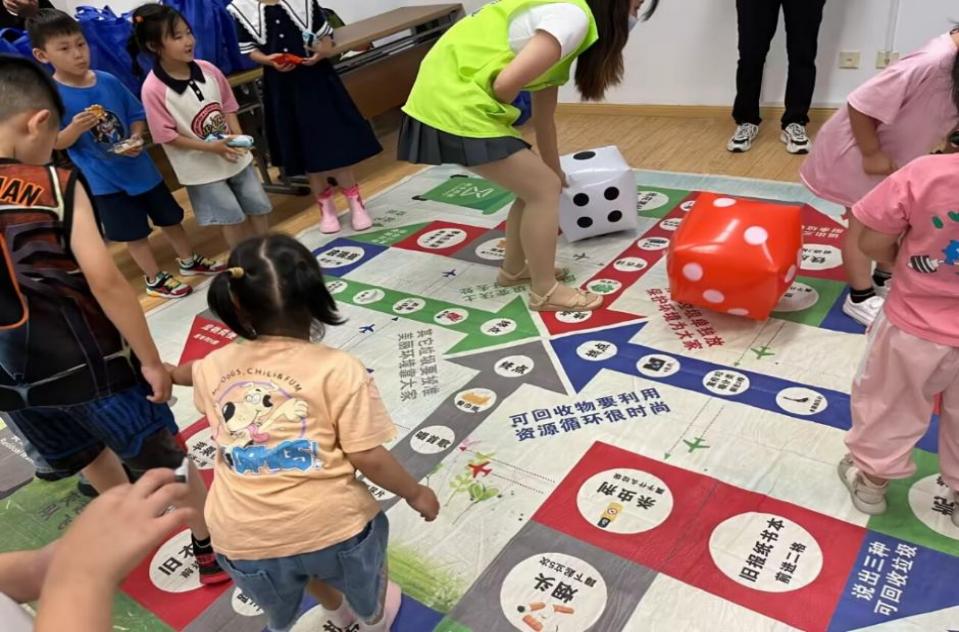 本次活动也创新性地将垃圾分类知识穿插进趣味十足的飞行棋游戏中,挑战者轮流依照投掷骰子的点数前进,并回答每一个停留格中有关垃圾分类的小问题。轻松有趣的游戏,吸引大家踊跃参与,小朋友们争先恐后地参与掷骰子,他们在游戏中再次加深了解了垃圾分类的方法与技巧。
