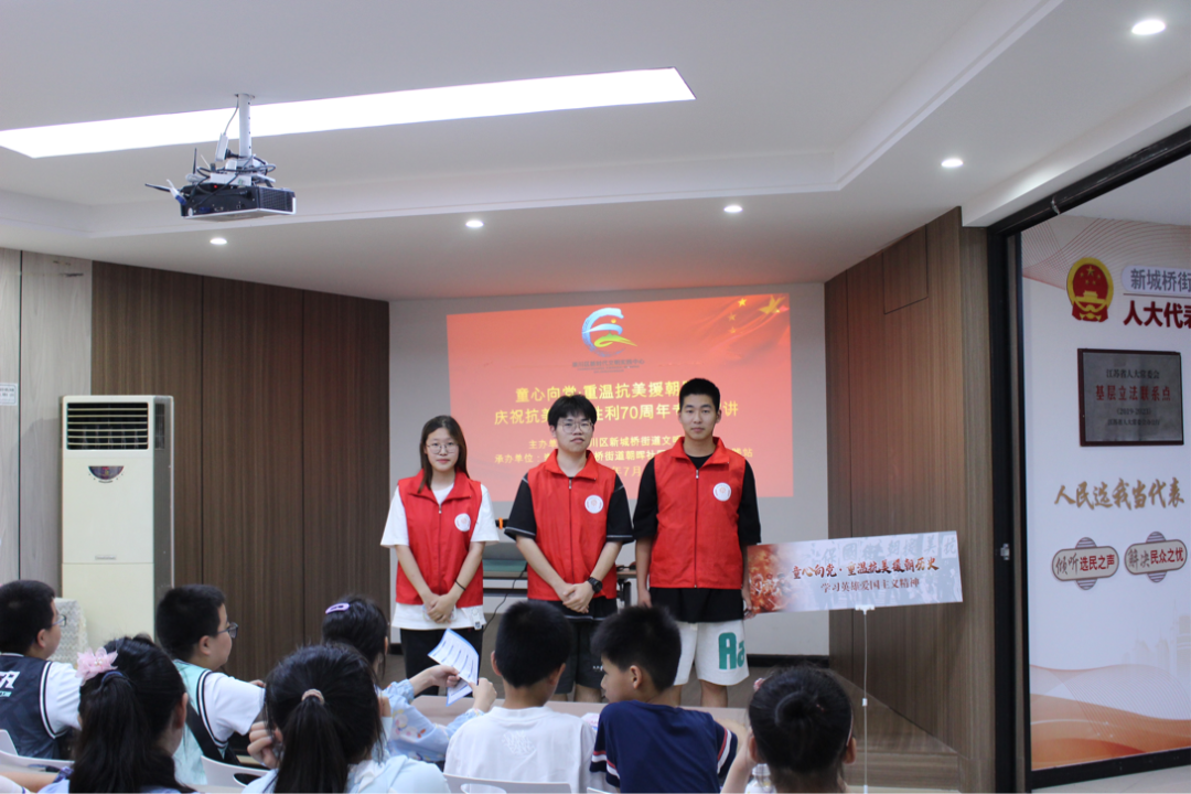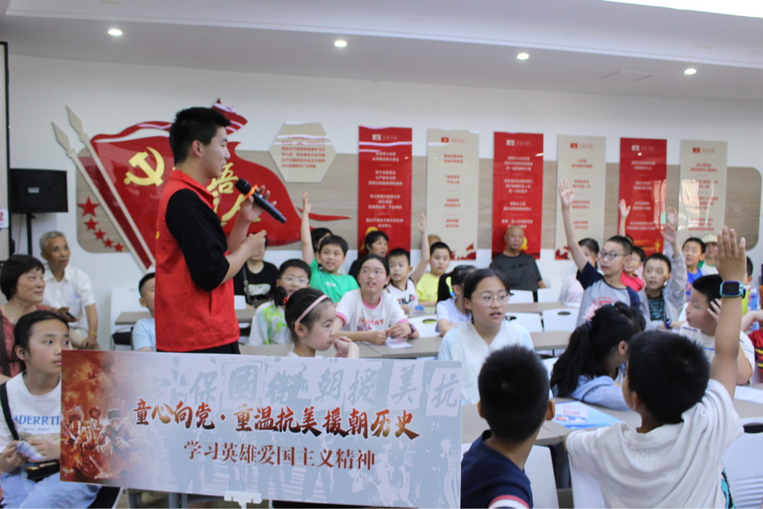 为深入学习贯彻党的二十大精神,7月 5日,船海学院2022101012团支部组建实践团赴南通市崇川区朝晖社区街道开展“童心向党,重温抗美援朝历史” 爱国主义宣讲实践,讲好中国历史、传承红色基因。
