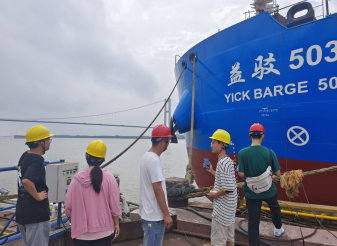图为实践团成员参观已经下水正在安装电力设备的“益驳503”号