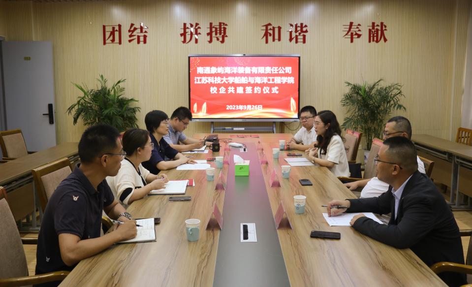 为庆祝学校办学九十周年,通过访企拓岗建立校企合作平台,拓宽学生培养渠道,提升人才培养质量,9月26日,船海学院邀请南通象屿海洋装备有限责任公司党总支副书记兼副总经理陈细妹,副总经理兼总工程师、船海学院1998届校友严勇,技术部部长孙鑫祥、人力资源部部长华跃一行来校洽谈校企共建事宜。船海学院副院长田阿利、刘昆出席本次会议,会议由党委副书记巫蓉主持。