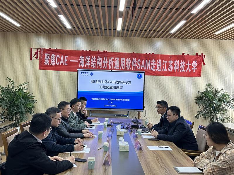 11月24日,中国船舶科学研究中心丁军研究员、中国船舶科学研究中心奥蓝托公司严伟教授一行应邀来我校开展海洋结构分析通用软件SAM培训活动,江苏科技大学船舶与海洋工程学院张健院长、李永正教授等师生代表参加本次活动。