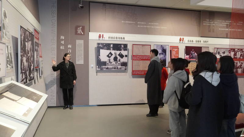 在庄严肃穆的陶行知纪念馆内,师生们跟随讲解员的引导,依次参观了“教育救国”“教育兴国”“教育强国”三大主题展区。珍贵的历史照片、手稿实物和影像资料生动再现了陶行知先生“捧着一颗心来,不带半根草去”的赤子之心,以及他毕生践行“生活即教育”“社会即学校”“教学做合一”教育理念的实践历程。展厅内,陶行知创办晓庄师范、推动平民教育、投身抗日救亡的事迹让同学们深受触动。船舶与海洋工程专业研究生于同学表示:“先生以教育为武器唤醒民众、振兴中华的信念,与我们今天‘海洋强国’的使命一脉相承。作为船海学子,更应把论文写在祖国的碧海深蓝中。”