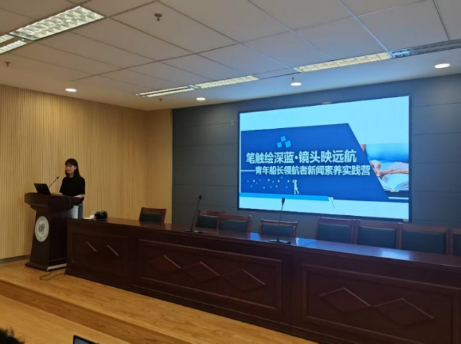 为进一步加强校园文化建设、提升研究生骨干新闻宣传能力,作为“青年船长领航工程”重要实践培养环节,2025年5月19日,船海学院在船建楼402会议室开展“笔触绘深蓝,镜头启征程”青年船长领航者新闻素养实践营。活动由辅导员黄妍主持,全体研究生骨干参与,围绕新闻写作与摄影实务展开专题辅导+实操训练。