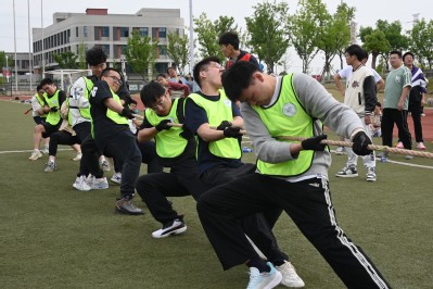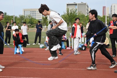 作为心理健康教育系列活动之一,船海学院在西操场举办了一场以“团结、健康、快乐”为主题的趣味运动会。活动设置了拔河和跳绳两个集体项目,注重增强学生体能、释放心理压力、提升班级凝聚力。比赛现场组织有序、气氛热烈,同学们积极参与、配合默契。拔河比赛中,参赛队伍奋力拼搏,展现出良好的团队协作精神;跳绳项目则以速跳与团体接力形式开展,锻炼了反应力与协调性。此次活动有效激发了学生参与体育锻炼的热情,在轻松氛围中达到了心理调适与团队建设的双重目标。