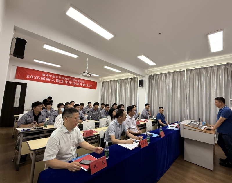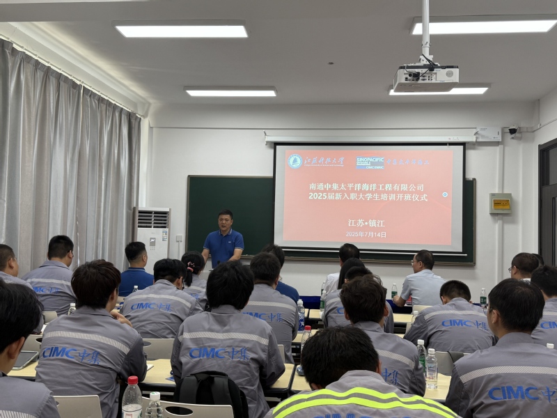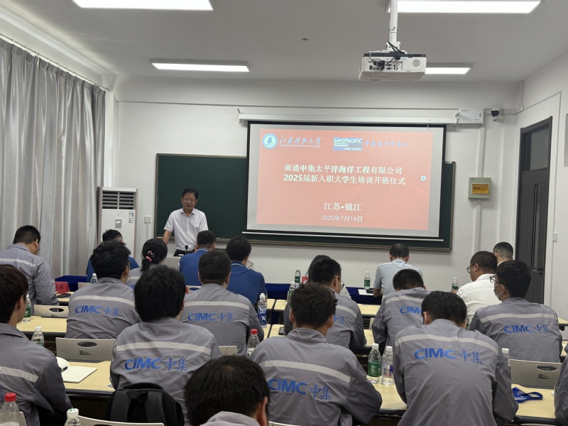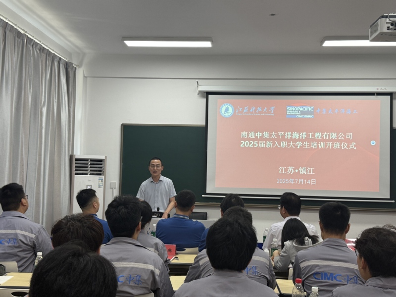 7月14日下午,由江苏科技大学船舶与海洋工程学院主办的南通中集太平洋海洋工程有限公司2025届新入职大学生暑期培训班开班仪式在江苏科技大学继续教育学院举行。中集太平洋海工党委书记、副总经理、技术总工周鲁兵,副部长邵宏昭,江苏科技大学继续教育学院副院长季风,船舶与海洋工程学院副院长周效国等出席本次仪式,仪式由船海学院船舶工程系系主任赵东主持。