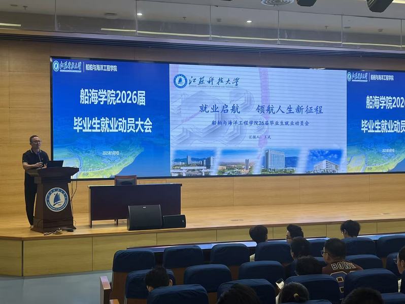 为帮助2026 届毕业生认清当前考研与就业形势,明确未来发展方向,做好人生规划,9 月 9 日,江苏科技大学船舶与海洋工程学院在图书馆 B105 教室隆重举办考研就业动员大会。学院党委副书记巫蓉、辅导员王武、王荃、刘星、纪哲出席会议,2026 届全体毕业生参会,共同开启毕业季的规划新篇章