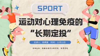 为深入落实立德树人根本任务,扎实推进“五育并举”育人体系建设,进一步提升学生心理健康素养,11月11日,船海学院联合体育学院开展“运动对心理免疫的‘长期定投’”心理健康专题讲座。讲座特邀体育学院段再复老师主讲,船海与体育学院百余名学子参与,共探运动与心理健康深层联结,以体强心赋能成长,助力学生德智体美劳全面发展。