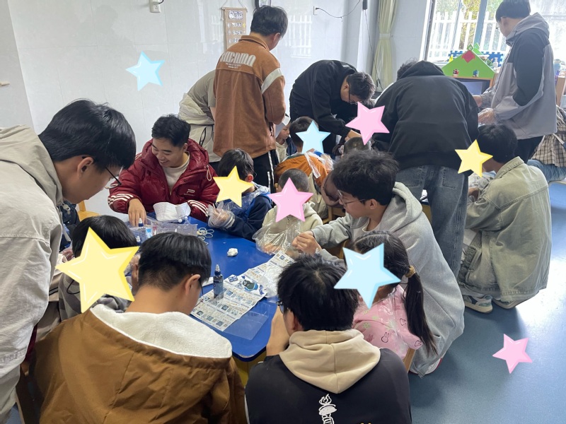 为深化研究生志愿服务价值感悟,传承中华优秀传统文化,增强集体凝聚力,船海学院研究生联合本地残联于2025年11月13日下午在残联活动中心举办“非遗扎染润‘星’田 船院匠心护成长”主题志愿活动。三十余名残障儿童在船海学院研究生志愿者的一对一指导下,沉浸式体验传统扎染技艺的魅力,活动全程由残联工作人员协助保障,实现文化传承与志愿奉献的深度融合。