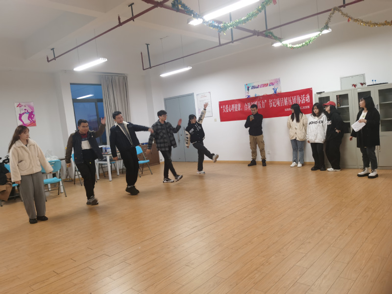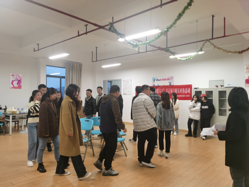 “滚雪球”、“五毛一块”、“大风吹”等团体解压活动在船建楼455进行,活动既包括需要团队配合的游戏也包括考验大家反应能力、运动能力的游戏,在游戏中,大家敞开心扉,主动交流,彼此帮助,尽情释放自己的压力。此次团体解压活动增进了同学们之间的联系和互动,加强了大家的团队协作意识,帮助大家以更加乐观积极的心态和状态面对接下来的学习和生活。