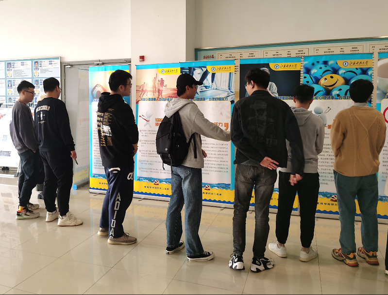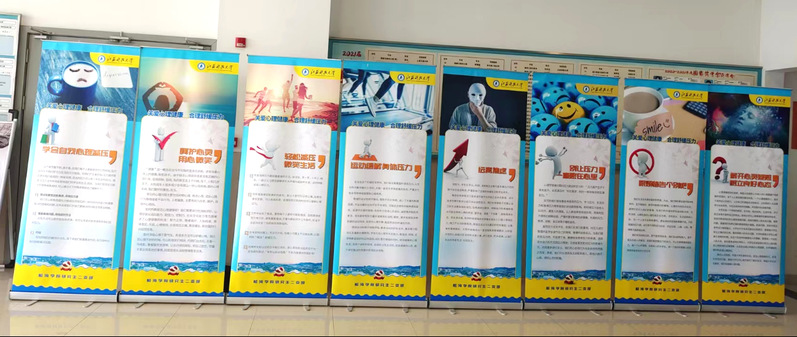 11月起,研究生二支部制作的“心理小知识”易拉宝在船海学院大厅展出,包含“别让压力一直憋在心里”、“呵护心灵,用心微笑”、“解开心灵疑惑,树立良好心态”、“跟烦恼告个别吧”、“学会自我心理减压”、“合理舒缓压力”、“运动缓解身体压力”、“轻松减压,微笑生活”八个方面的内容。通过宣传普及了心理健康知识,也让学院师生们都重视心理健康问题,简便解压方式的介绍也能帮助有压力的同学及时、合理地舒缓情绪。船海学院研究生欧阳欢表示,原来心理问题是普遍的也是正常的,自己以后有压力的时候会通过打球来释放压力。其他同学也纷纷表示学到了很多调节心理状态的方法,有助于更好的学习与生活。