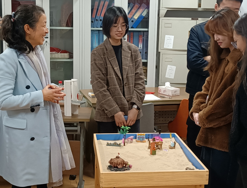研究生二支部在船海楼心海罗盘工作站组织心理沙盘活动,活动邀请国家二级心理咨询师王爱萍老师。王老师用风趣幽默的方式向同学们介绍了心理沙盘的相关内容后,同学们随机组合沙盘,开启了沙盘之旅。经过几轮的摆放和分享,讨论沙盘游戏过程中的一些现象,同学们对投射的问题也进行了深入思考。在一个多小时的活动中,同学们深切感受到了“换位思考、理解别人的感受、不要急于判断、发挥团队协作的力量”等在人际交往关系中的重要性。同学们纷纷表示,从活动中体验到了快乐、成就感等多种有利身心健康的情绪,也学会了如何与自己“对话”,能在有心理压力时及时自我排解。