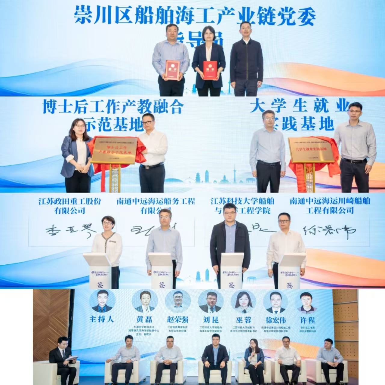 为聚焦长三角船舶海工产业协同发展,船海学院党委正式加入崇川区船舶海工产业链党委,揭牌博士后工作产教融合示范基地与大学生就业实践基地,构建“党建+产业+人才”三位一体发展新格局。学院与南通中远海运川崎、南通中远海运船务、江苏政田重工三大龙头企业签署“技术联合攻坚计划”,覆盖智能船舶制造、绿色船舶设计等前沿领域。在“聚势长三角·智造新船说”圆桌论坛上,学院领导作为高校代表围绕科研、人才培养进行发言,获地方政府与企业高度认同。