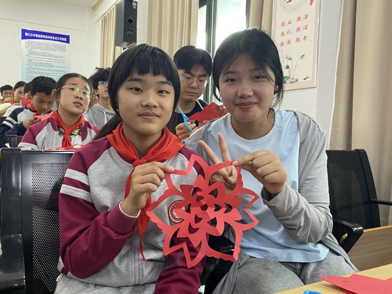 夕阳映照下,中学生们手捧剪纸作品与志愿者合影,红纸翻飞如蝶,笑声琅琅如歌。当徐州剪纸的古老纹样遇上青春指尖,当高校的学术能量注入基础教育,这场跨越千年的“非遗接力”,正为文化传承写下最生动的青春注脚。