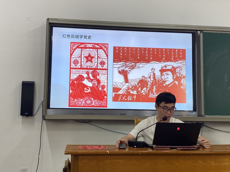活动伊始,船海学院研究生陈腾以图文并茂的微课形式,带领三中学生穿越徐州剪纸的历史长廊。从汉代“金银平脱”技艺的起源,到明清民俗剪纸的繁荣;从“喜鹊登梅”“龙凤呈祥”的吉祥符号,到《百鸟朝凤》《运河帆影》的当代创新,一幅幅经典作品投影于屏幕,勾勒出徐州剪纸“粗犷不失精巧,古拙兼具灵动”的艺术特质。