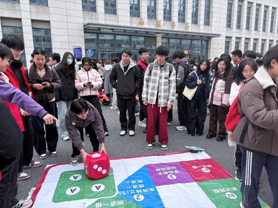 学院创新打造“温暖共绘,幸福交换所”主题活动,鼓励同学们写下专属自己的幸福小事,制作成趣味刮刮乐进行交换,让微小幸福在校园中传递,帮助大家发现生活中的美好与温暖。同时,学院在西苑食堂门口开展真人版飞行器主题心理活动,在轻松欢乐的氛围中引导同学们以健康向上的生活方式为幸福加分。